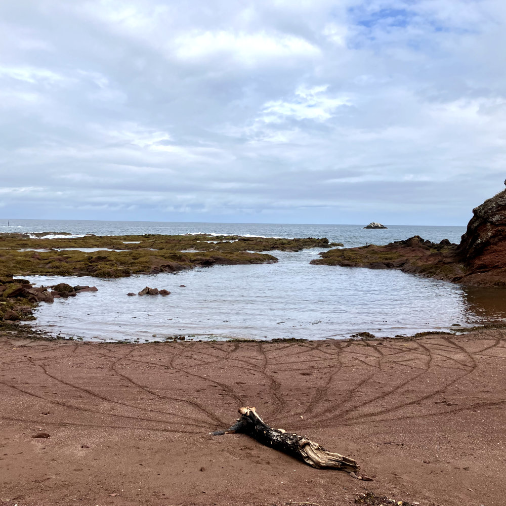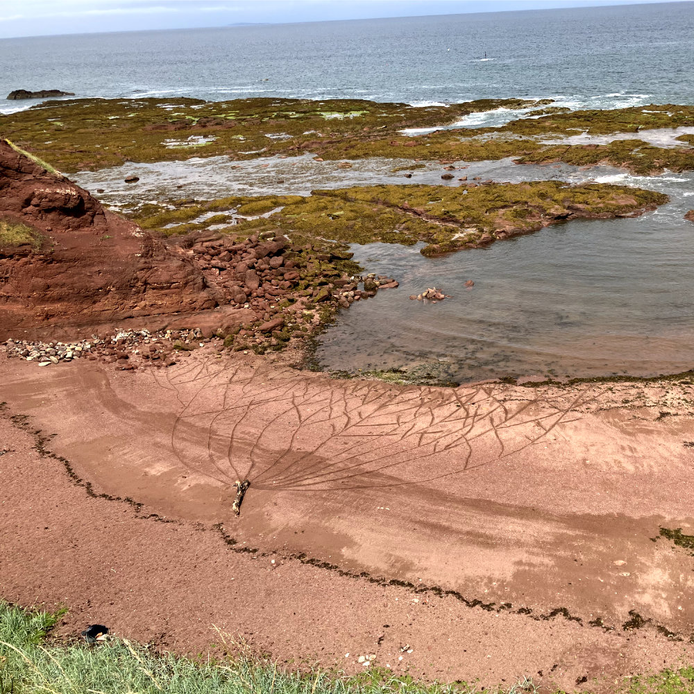 "sand drawing tree", Bayswell Beach, Dunbar, Schottland, 2023