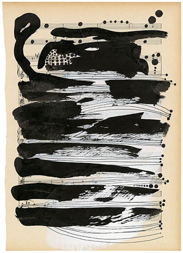 Acryl, Tusche auf Notenpapier