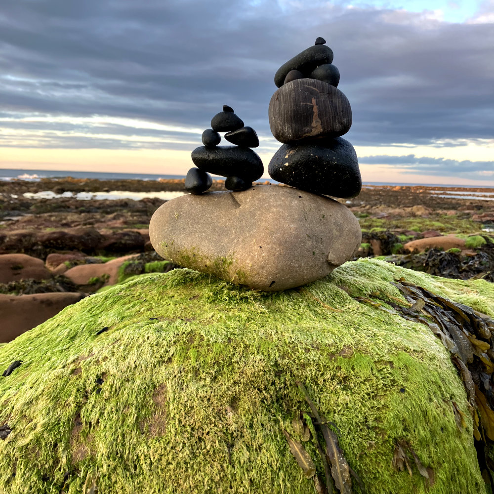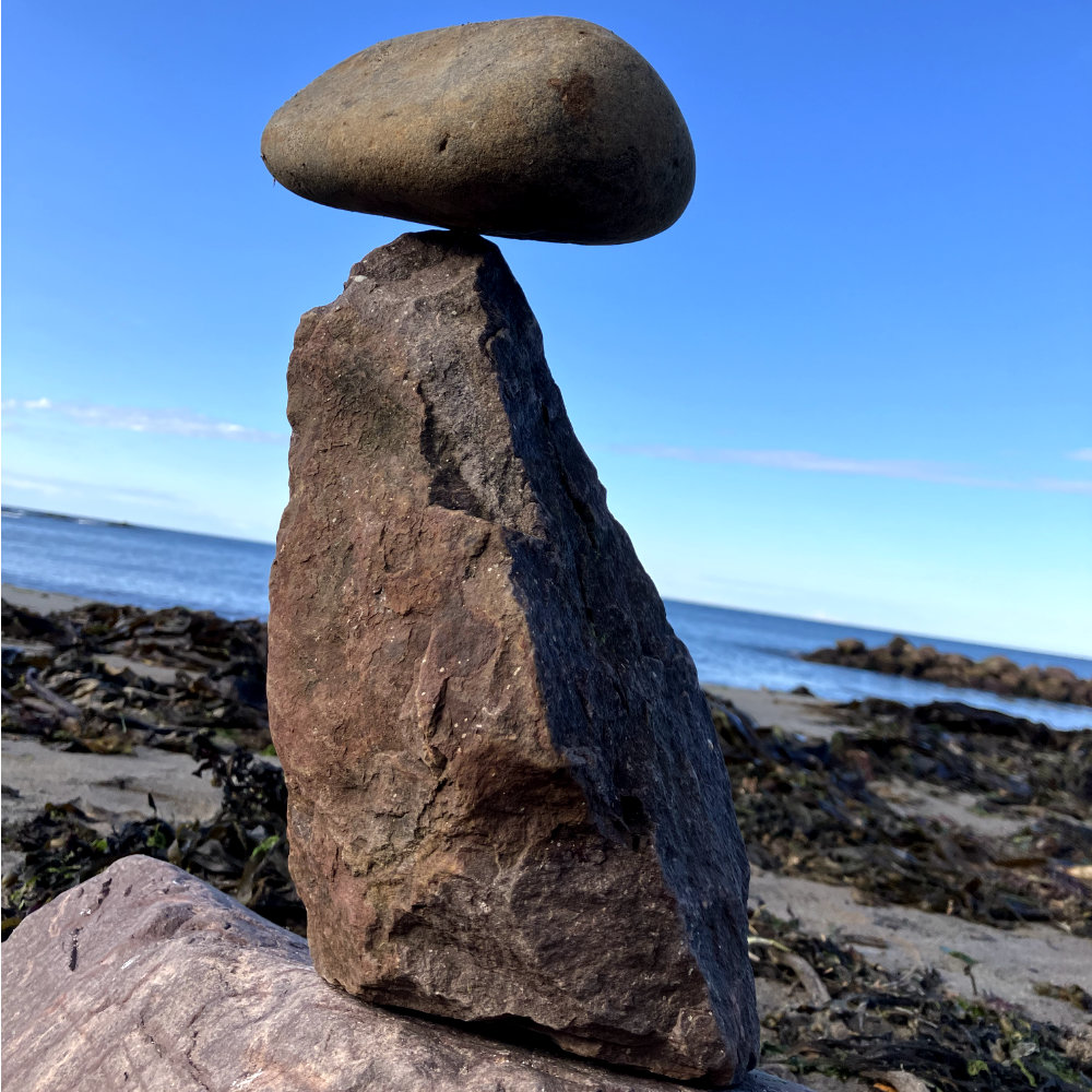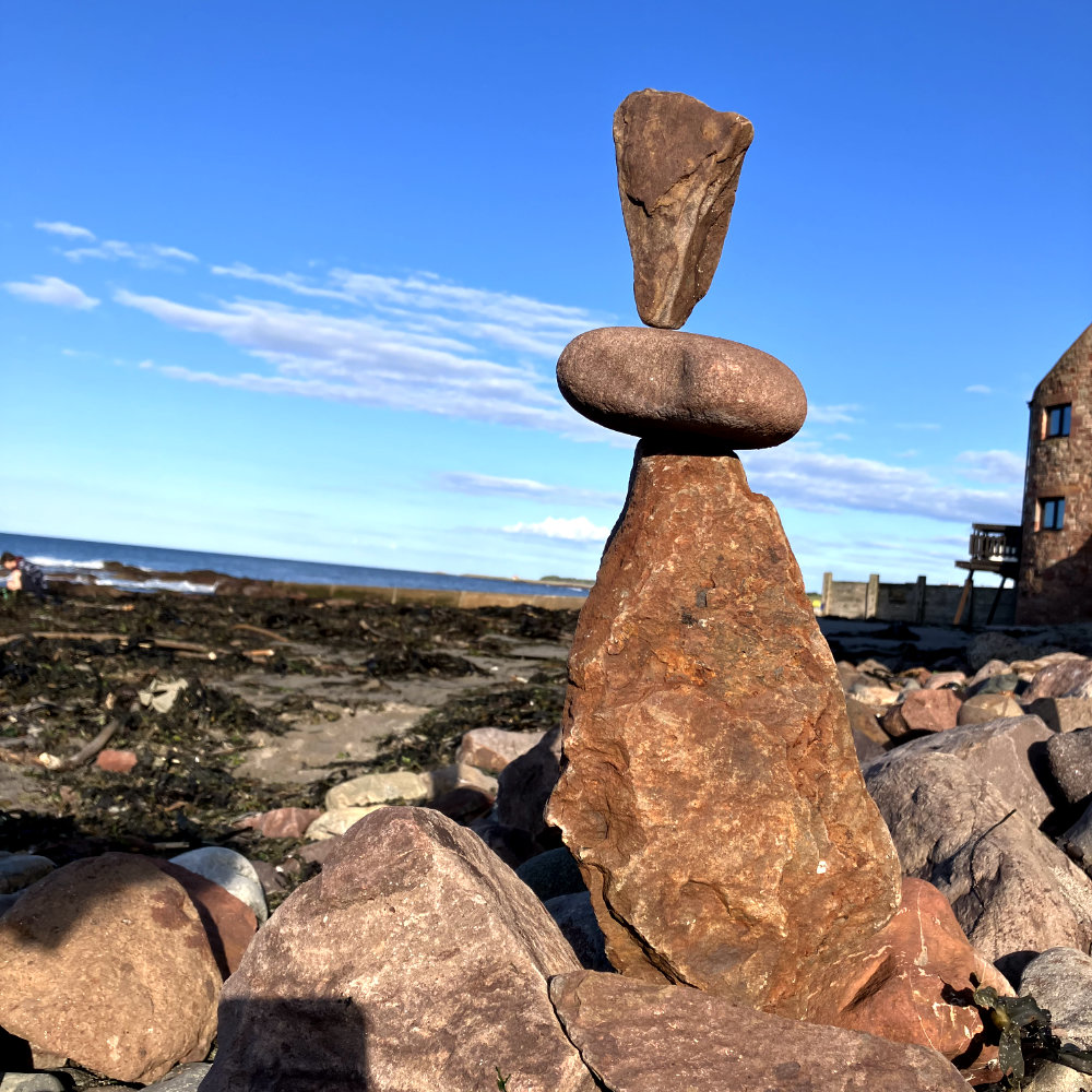 "stone balance", Bayswell Beach, Dunbar, Schottland, 2023